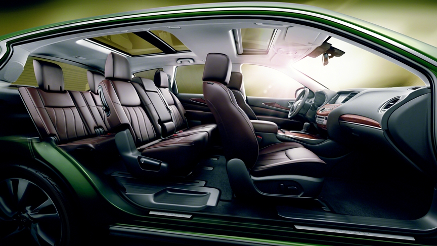 In the interior, for example, the production Infiniti JX will offer what is expected to be class-leading roominess, along with a 2nd row seat design that tilts and slides forward providing exceptionally easy 3rd row access.
