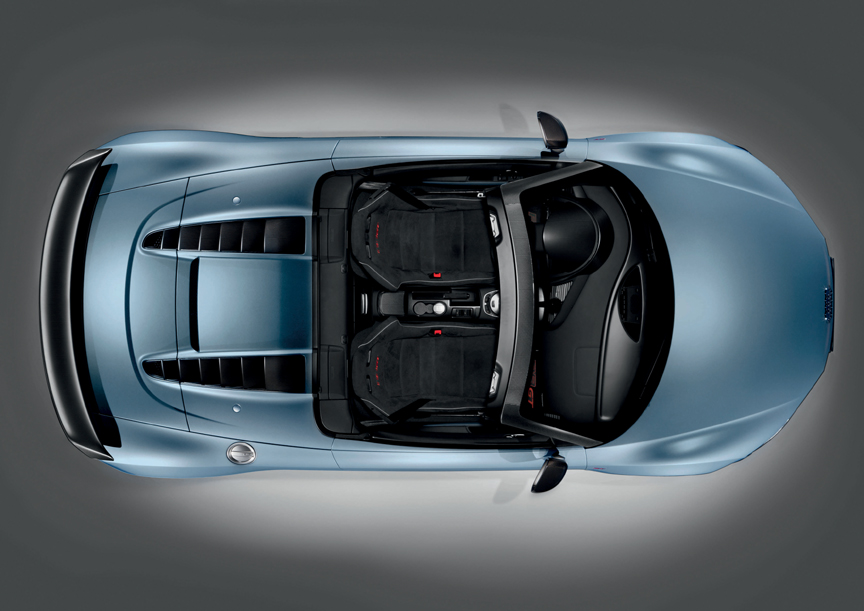 A fixed rear spoiler of carbon fiber composite provides the necessary downforce on the rear axle. Many additional components, including the cover of the top compartment and the large side panels of the Spyder, are also made of carbon fiber composite. The chassis of the standard bucket seats is made of glass fiber-reinforced plastic. A chassis of carbon fiber composite is available as an option.