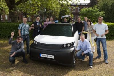 The vehicle concept integrates novel vehicle and production technologies as well as innovative battery management and financing solutions. For the series production electric car "made in Aachen," a price of around €5,000 ($7,140) is envisaged, battery leasing costs excluded.
