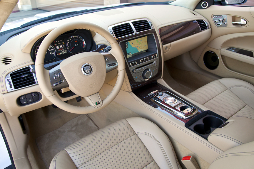 First, there's the sensual experience of opening the door and sitting in the comfortable leather-appointed seats. There's the smell of the leather. There's the comfort of the seat holding you in. There's the wood and leather dash in front of you. There's the multi-function steering wheel that you grab. There's the Jaguar exclusive pop-up shifter that rises out of the center console.