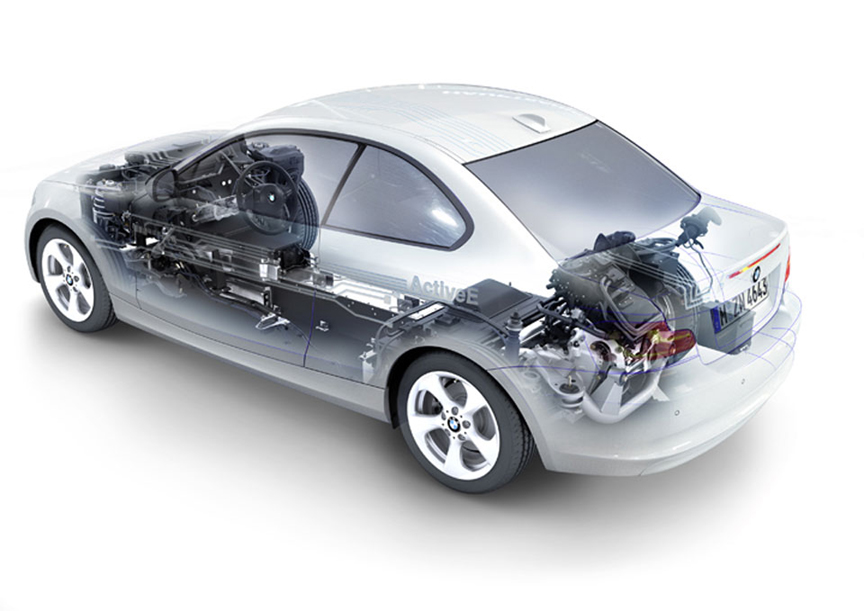 ActiveE project leader Bernhard Hofer said: “It was important to us to build the electric synchronous motor ourselves, as well as the other components. The li-ion 32 KWh battery pack has been developed with SB LiMotive. Al the other components including transmission and power electronics have been developed in house.”