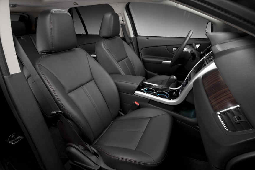 APPEARANCE: Can you say "nose job"? But it's not in the expected direction. The 2007-10 Edge was distinctive, and the new restyle builds on that with a bigger and bolder grille and hood. No dainty reduction rhinoplasty here! The hood is higher and flatter, and the massive-looking T-shaped grille incorporates the headlights to the sides of its top section. LED foglamps are found in vertical faux brake ducts in the lower fascia. The rear panel is more sculpted, complimented by redesigned taillights. The Edge's passenger-first proportions are unchanged, and it's actually a couple of inches shorter, all the better for parking. (As for that hood and grille, I'm thinking that worldwide pedestrian-impact regulations and specifications have as much to to with that (and the styling of many other vehicles) as does fashion.)