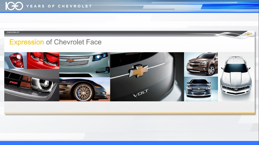 Exterior design cues shown here are the key visual elements and identity - the face in Welburn-speak - in sculpted shapes that define Chevrolet designs in every vehicle everywhere in the world.