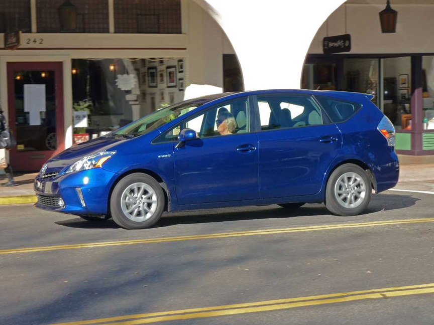 The mileage does not seem to be much affected by the 232 pounds of extra weight: the 'v' puts 3,275 lbs on the scale. The EPA estimates 42 mpg and my first test drive in the greater LA area averaged 39.73 mpg. Please bear in mind that I am driving as I normally do: not slow, but pushing the throttle from time to time. In European terms it means that the Prius v used 25.6 liters of gas to cover a distance of 432 km, an average of 16.9 km per liter, or 5,9 l/100 km. Not bad at all!