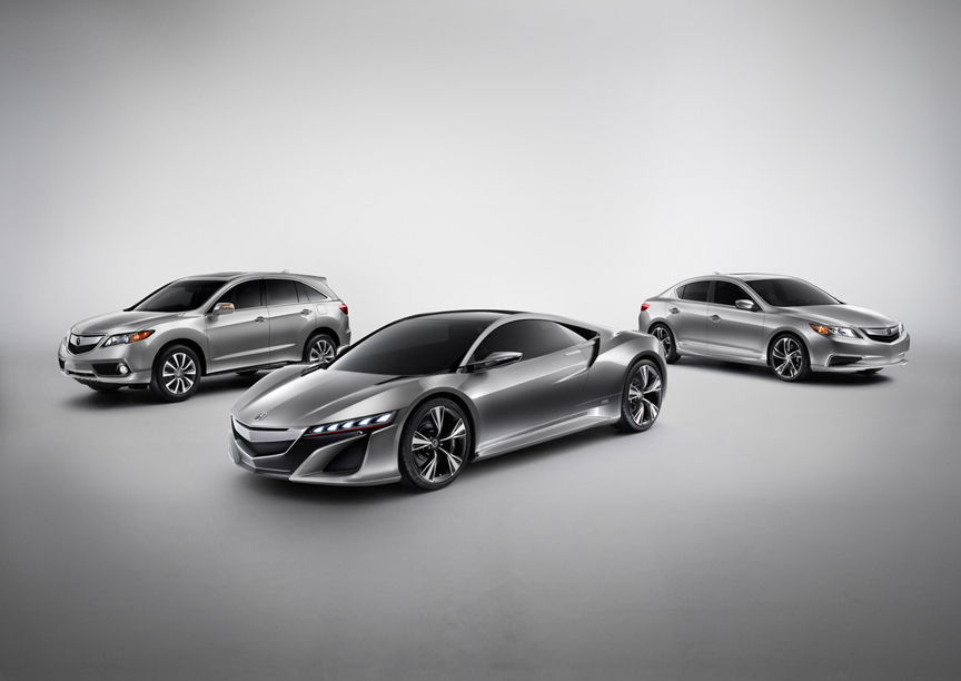 ![]() Prototype of the 2013 Acura RDX crossover sport utility vehicle, the new NSX Concept, and the ILX luxury compact sedan |