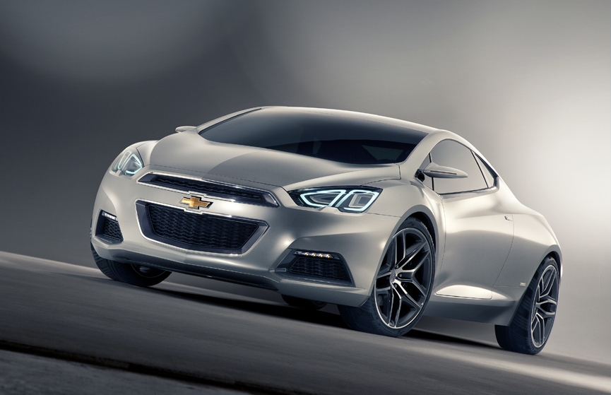 Tru 140S, the second Chevrolet concept is a front-wheel-drive, “affordable exotic” four-seat sporty coupe. The three-door hatchback was designed to be an attractive-yet-affordable sports car. Shown in an all-new matte white with Chevy performance chrome wheels featuring crossflag emblems, Tru 140S is designed to look confident, exotic, expensive and fast. Tru 140S is based off the same platform as the Chevrolet Cruze and the groundbreaking Chevrolet Volt electric vehicle with extended range.