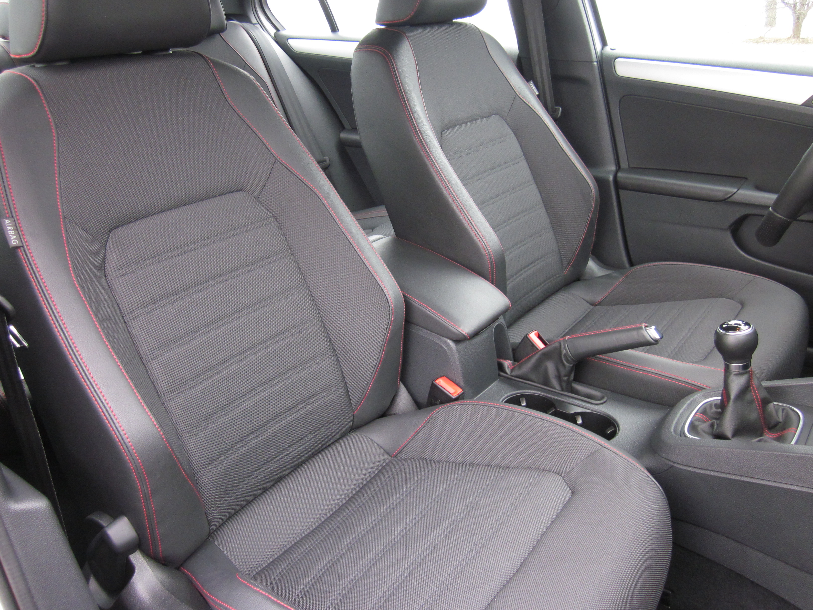 Brakes are four-wheel discs with ABS of course, and the calipers are painted red on the GLI.
