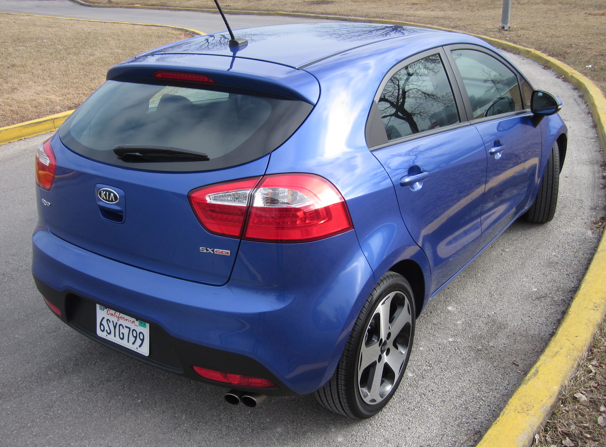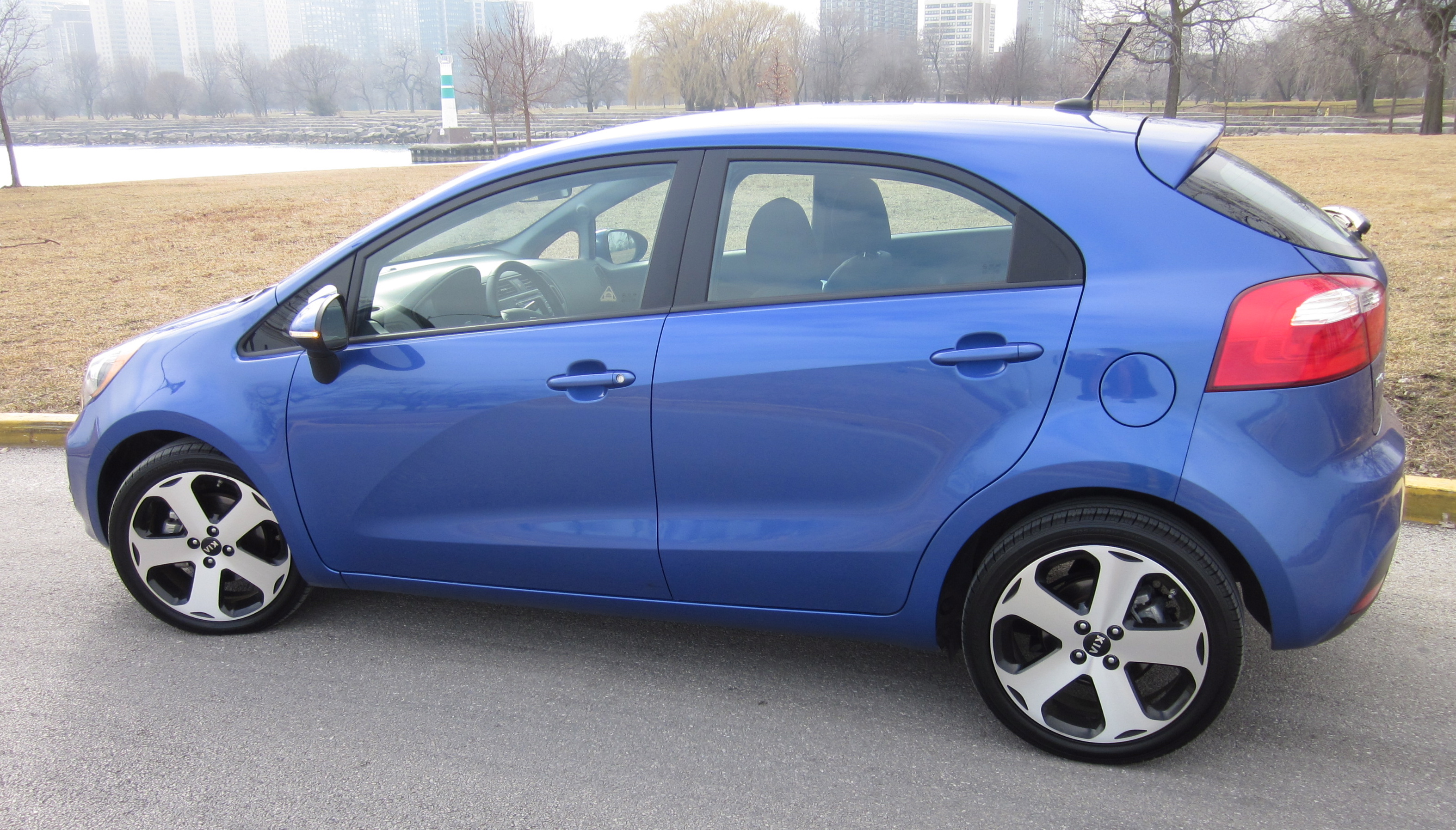 The LX ($13,400 for the sedan and $13,600 for the 5-door) trim includes body-color door handles and side mirrors, rear wiper and washer, multi-reflector headlamps and 15-inch steel wheels with 185/65R15 tires, while the Rio 5-door also comes with a standard rear spoiler to improve aerodynamics. The EX trim brings additional standard conveniences, including power door locks with keyless entry and a chrome front grille surround. The SX trim offers standard 17-inch wheels with 205/45R17 tires, fog lamps, LED accent lights and rear combination lamps, dual chrome exhaust tips, power-folding outside heated mirrors with turn signal indicators and, unique for the Rio 5-door, projector headlamps.