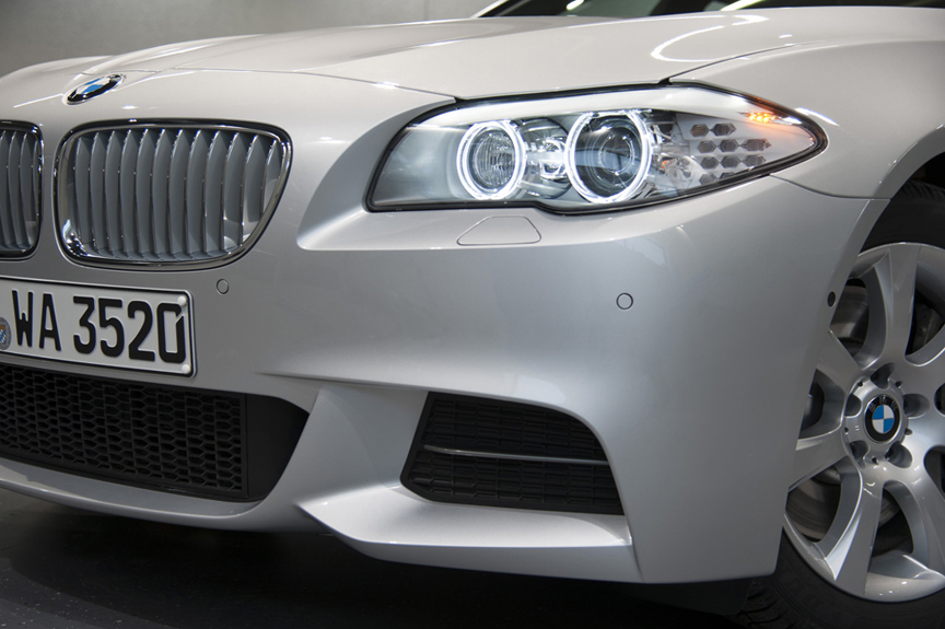 Both the Sedan and Touring models prove more impressively than ever that the hallmark pulling power of a diesel engine can be converted into inspirational driving dynamics. The BMW M550d xDrive Sedan accelerates from 0 to 100 km/h (62 mph) in 4.7 seconds, while the BMW M550d xDrive Touring covers the same sprint in 4.9 seconds. The two models showcase the efficiency benefits of diesel technology equally convincingly. In the EU test cycle the Sedan records fuel consumption of just 6.3 litres per 100 kilometres (44.8 mpg imp), the Touring 6.4 l/100 km (44.1 mpg imp). CO2 emissions are 165 grams per kilometre for the BMW M550d xDrive Sedan and 169 g/km for the BMW M550d xDrive Touring. Both models also meet the requirements specified by the EU6 exhaust standard.