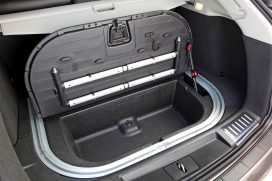 The rear compartment’s load floor has a latch that reveals a waterproof bin, measuring 26 by 12 inches by eight inches deep. This easy-to-clean bin is ideal for storing damp or dirty items from a beach trip, or it can be used as a cooler, or to house smaller items under the floor and out of view. A smaller secondary bin holds the vehicle’s tire inflator kit that can be used as a pump for bike tires and beach toys depending on valve compatibility.