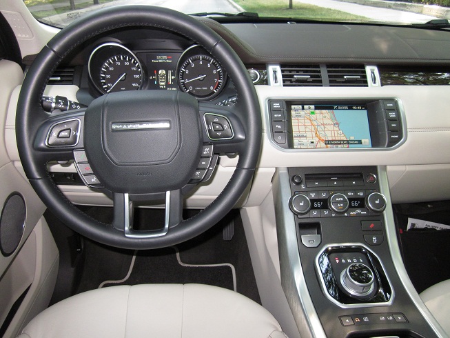 Station wagons are giving way to crossover SUVs. Some of the brands I hinted at above have had long time wagon offerings but now are cutting back and going more in to crossovers. New on the crossover scene is the 2012 Range Rover Evoque. I had spent about thirty minutes in the Evoque prior to this scheduled test drive and was looking forward to getting to know this vehicle much better. When the Evoque LRX concept was first shown it impressed many. When the production Evoque hit the market it didn’t change much. It’s quite handsome and uniquely styled with its sloping rear roof section. The interior is very rich and makes quite a first impression.