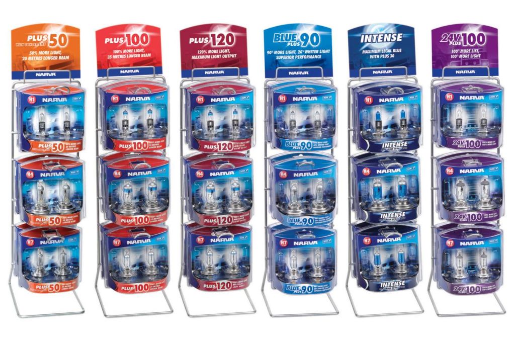 The six merchandisers cover the latest range of Narva ADR approved and street legal performance globes including PLUS50, PLUS100, PLUS120, BLUE PLUS90, INTENSE and the 24V PLUS100 globes. Each merchandiser carries two each of H1, H4 and H7 globes.