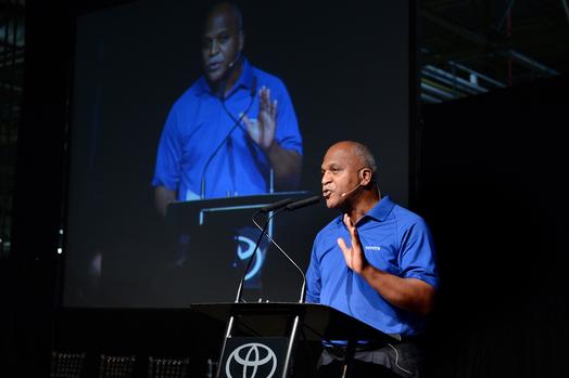 James (president of Toyota Motor Manufacturing and moderator of the event),