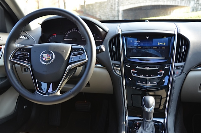 The CUE…Cadillac User Experience…is for control of audio, heating and cooling, navigation and connectivity. An 8-inch LCD multi-touch screen at the top of the center instrument panel looks like a smart phone and below is a faceplate using capacitive touch technology. The system is a quick study to use but does pull your eyes from the road. It’s also a bit slow and requires a few too many steps. I’d prefer a couple of good old knobs. Also, I didn’t like the fact that it gets full of fingerprints that are especially noticeable in bright sun. A small cloth should come with the ATS to wipe it clean frequently.