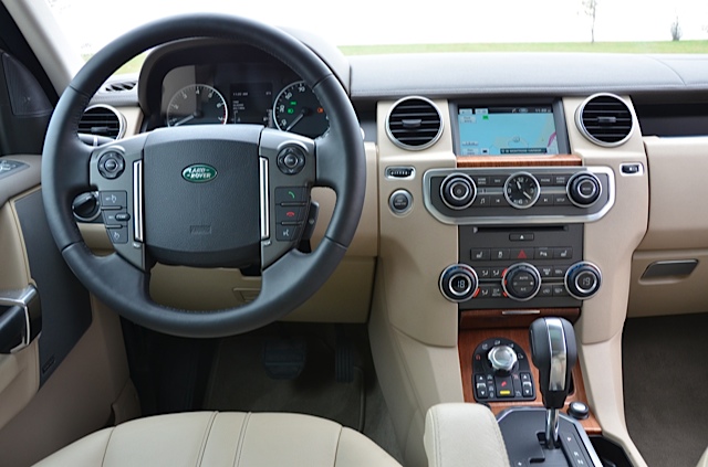 My tester-for-a-week was a 2012 LR4 HSE in a Nara Bronze color that I thought would be a pretty good choice for not showing the dirt too much if I were traversing muddy farmland in Wisconsin, dirt roads in Northern Michigan or the western mountains of the U.S. The LR4 is one powerful vehicle equipped with a 375HP 5.0-liter V8 coupled to an electronically controlled ZF 6-speed automatic that will get its 5659 lbs. moving from zero to sixty in 7.5 sec. Top speed is 121 mph, which is testimonial to the engines power considering the brick-like 0.40Cd.