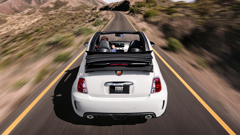 For access to the Fiat 500c Abarth's trunk, premium "parallelogram" liftgate hinges conveniently position the liftgate out of the way, while the power-operated cloth top automatically retracts back to the rear-spoiler position to avoid any obstruction.