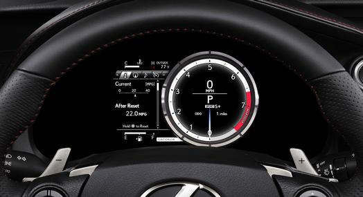 On board, drivers will receive vehicle information from an innovative driver’s meter cluster with a moving center ring, inspired by the LFA. Interior trim detailing includes an F SPORT steering wheel and shift knob, and aluminum pedals and scuff plates that include the Lexus logo.