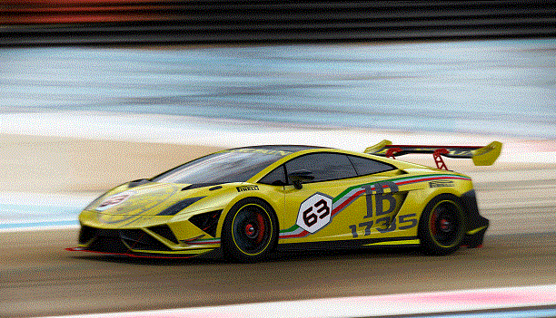 The 2013 Gallardo LP 570-4 race car has improved aerodynamics, cooling and down force. Better aerodynamics resulted in a 120 percent better efficiency, front brake cooling improved by 50 percent and down force by an additional 350 pounds in low drag, increasing to 160 kg in high-down force.