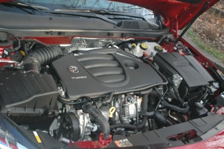 As she climbed into the passenger seat she gushed about the visual drama of the GS’s front view, though she had only seen it in the funky light of the parking lot. The Crystal Red paint along with the gaping, vertical vents in the fascia and the profile of the car made a fine impression, indeed. With bold styling cues and a recognizable design language, anyone who is modestly knowledgeable about cars will not mistake it for anything other than a Buick.