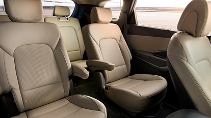 Both of our test models were the top Limited trim level for six, laden with the goodies, including leather, that can push a sticker price up a few thou, a direction many vehicle consumers now seem to be heading. (Remember some of those basic vehicle fundamentals like windows with crank handles? Do those even exist any more?) The second row seating in our Santa Fe for six had fold-flat captain's chairs instead of the seven-passenger GLS model's 40-20-40 bench seat.