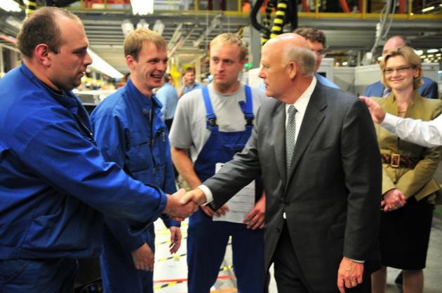 ![]() General Motors Chairman and CEO Dan Akerson meets with workers at the GM factory in St. Petersburg, Russia, on Friday, June 22, 2012. (International Busisness Times) |
