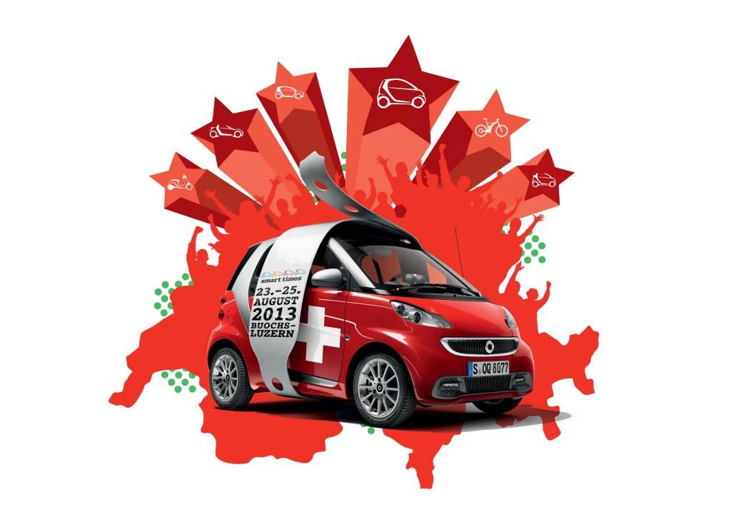 STUTTGART, GERMANY – June 13, 2013. From 23 to 25 August 2013 the worldwide smart fan community will come together on the south bank of Lake Lucerne against the scenic backdrop of the Alps for this year’s smart times. Several thousand smart enthusiasts are expected in Buochs, Lucerne with their vehicles of all smart model series, some of which have been painstakingly customised or exotically modified by their owners. This year the focus of the world’s largest gathering of smart fans is on electric mobility. 100 percent driving fun with zero emissions: the urban trend brand is already the epitome of electric driving. A further highlight of the event is the smart roadster’s tenth birthday celebrations.