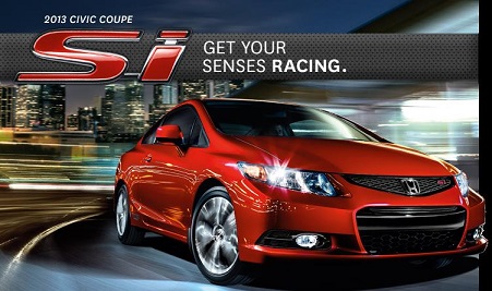 I drove A 2013 Honda Civic Si with a standard 201-horsepower 2.4-liter Dual Overhead Cam i-VTEC four-cylinder engine mated with a six-speed manual transmission. Available in one coupe trim varied by optional equipment, my test drive featured the following standard equipment: Honda Satellite Navigation System; multi-angle rearview mirror; illuminated leather-wrapped steering wheel; steering-wheel mounted controls; XM Radio; Bluetooth; SMS text message function; Pandora compatibility; sport seats; moonroof; spoiler; fog lights; seventeen-inch Michelin Pilot Exalto tires. Total vehicle cost as described came to $24,215.