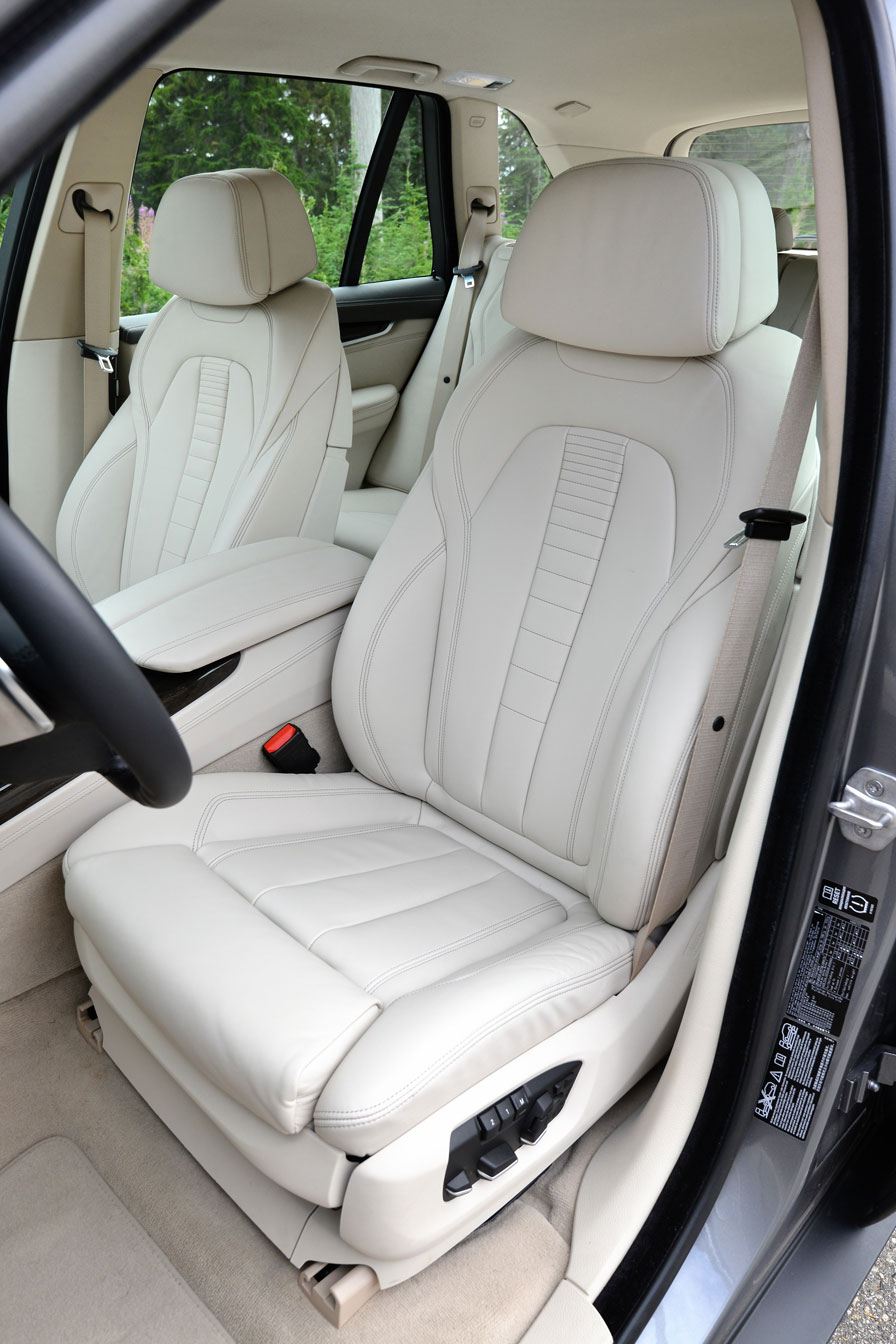 In Comfort mode, the xDrive 30d offers a stable feel with the road and stability is good. Both my colleague and I preferred the firmer steering feel of the Sport mode, but you are not able to make the combination with the comfort set up of the suspension (yet). Fuel consumption of this engine has been improved to 45.6 mpg imp. with 162-164 grams CO2, depending on tire size. If the 30d is on the optional 275/40/R20 tires up front and 31/35 R20 in the rear, the CO2 is 2 grams higher than on the standard 255/50 R19 and 285/5 R19 tires respectively like those on our test car. With the 22.45 cu-ft contents of the fuel tank, it means a range of around 1,000 miles.