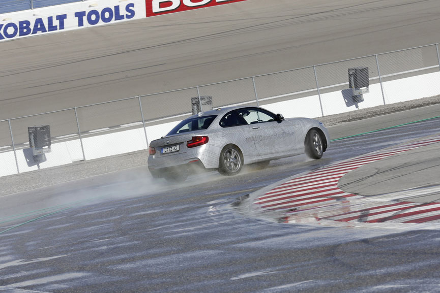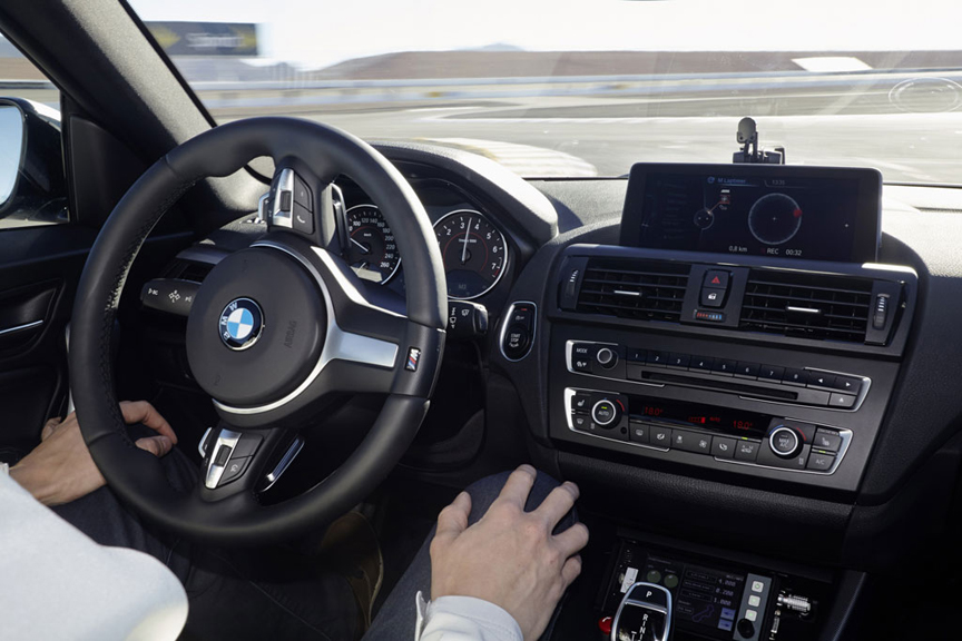 At the handling course of the Las Vegas Speedway, BMW showed its state-of-autonomous driving by letting me ride shotgun in a prototype of the upcoming M235i Coupe. Its driver – that is say, the guy who in fact did NOT drive – is an engineer in the Research and Technology team. He was responsible for “teaching” the car how to handle the track and how to maneuver a short slalom.