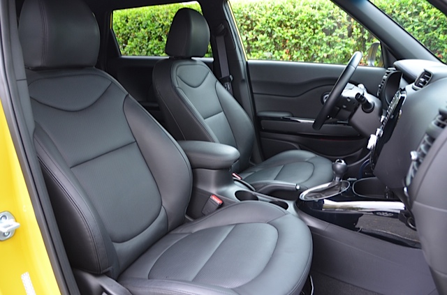 My Solar Yellow road trip Soul was the Exclaim model with a base MSRP of $20,300. Standard on this model are lots of comfort, convenience and safety features that we have come to expect in nearly every vehicle segment today. Niceties like 10-way power driver’s seat, leather wrapped steering wheel, power-folding outside mirrors that have a city-friendly setting to fold-in every time you lock the car, a cooled glove box, and on the outside LED daytime running lights and unique headlights.