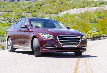 With charming modesty Hyundai declares its 2015 Genesis a competitor for Mercedes E Class and BMW 5 Series. Have they succeeded in delivering luxury and competence at that level of excellence? We, and other experienced writers, agree the answer is a resounding yes. Let’s tick off a few hallmark boxes, those that symbolize the provenience of luxury European automobile brands: extensive Nürburgring Nordschleife testing? Certainly. Powerful engines in two flavors? Absolutely. All Wheel Drive availability? Yes, for the V-6, no for the V-8. Economy-oriented I-4 engines? No, no, no.