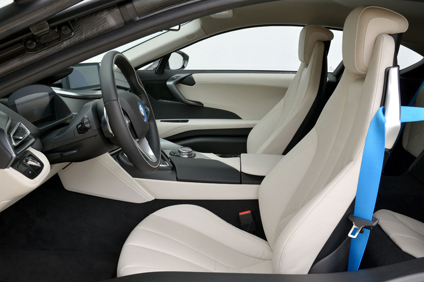 The stiff chassis gives a lot of feedback and steering is light and precise. Thanks to its aluminum construction and carbon fiber reinforced plastic (CFRP) body, the weight of the i8 is ‘restricted’ to 3,273 pounds.