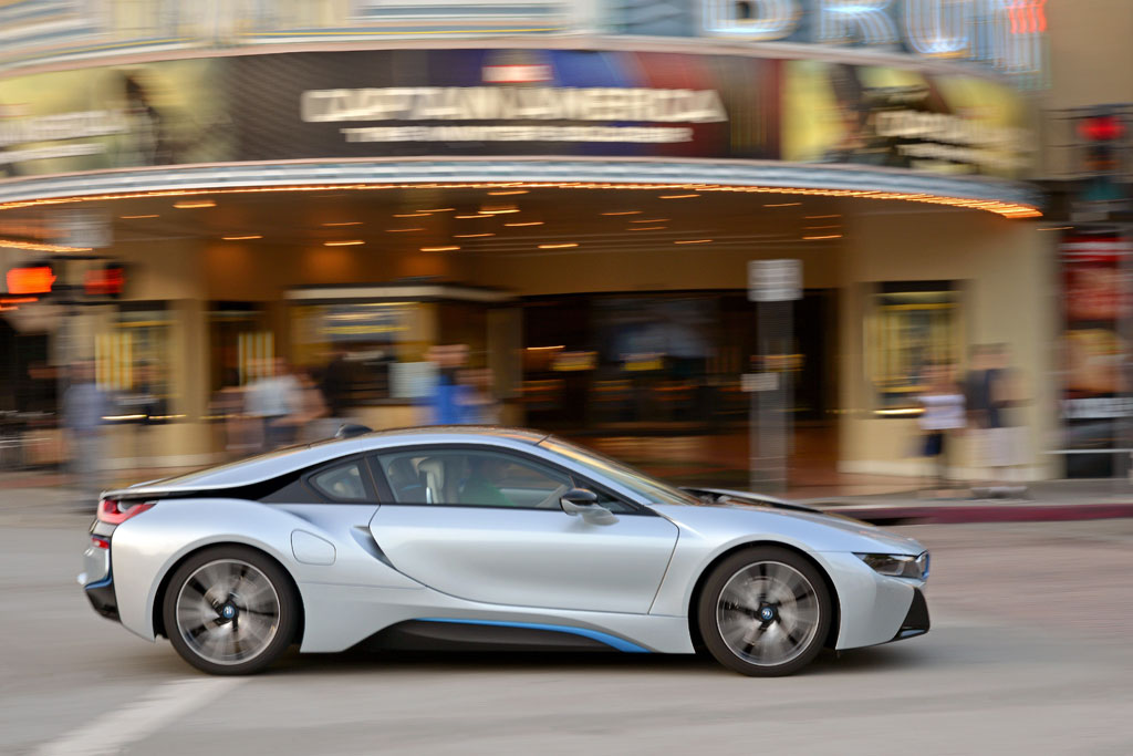 SANTA MONICA - April 28, 2014: Our first drive (on public roads) of the BMW i8 turned out to be exiting and fun. The amazing looking plug-in hybrid is not only a car that attracts a lot of attention, but a sports car true to its name.