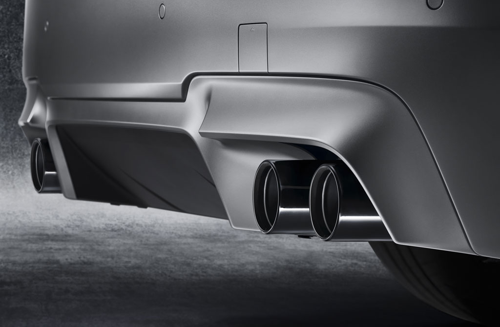 show that kidney grille, door handle inserts and twin exhaust tailpipes in