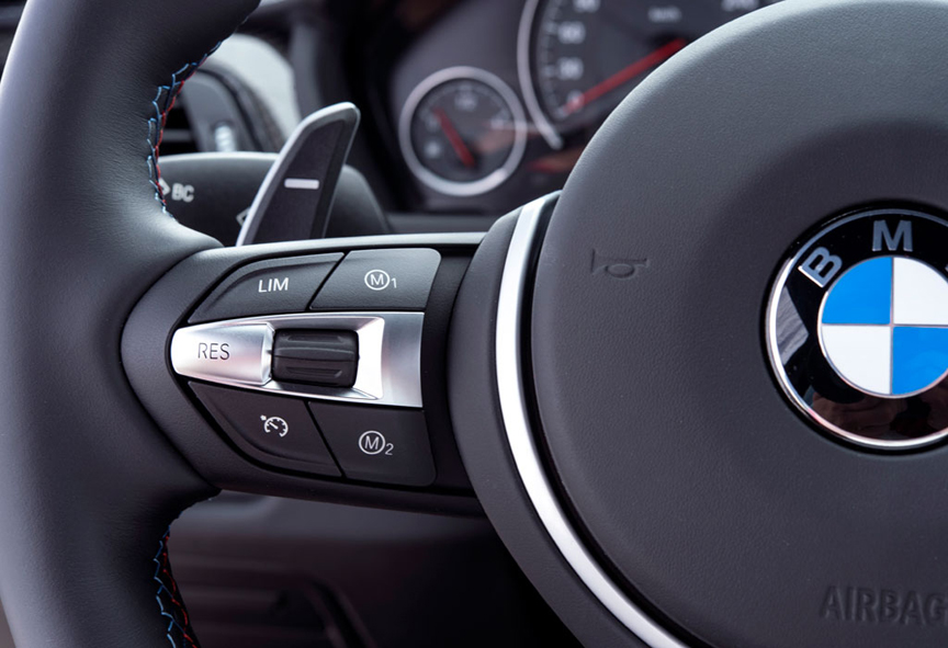 The M3/M4 always starts in default mode, but except from adjusting everything by means of the separate switches at the left side of the shift handle, you can use the M1 and M2 buttons on the steering wheel. In M1, steering and damping are switched in comfort mode, while retaining the sport mode form engine and transmission. In M2, damping goes into Sport with VDC (variable damping control), while engine and steering go into Sport+ , is MDM activated and DSC disengaged, but remains stand-by in case of emergency. The transmission management is switched into the so-called S3 Sport mode, which means that shifts are some 40 per cent faster. In that case you also feel the shift points of the double clutch transmission.