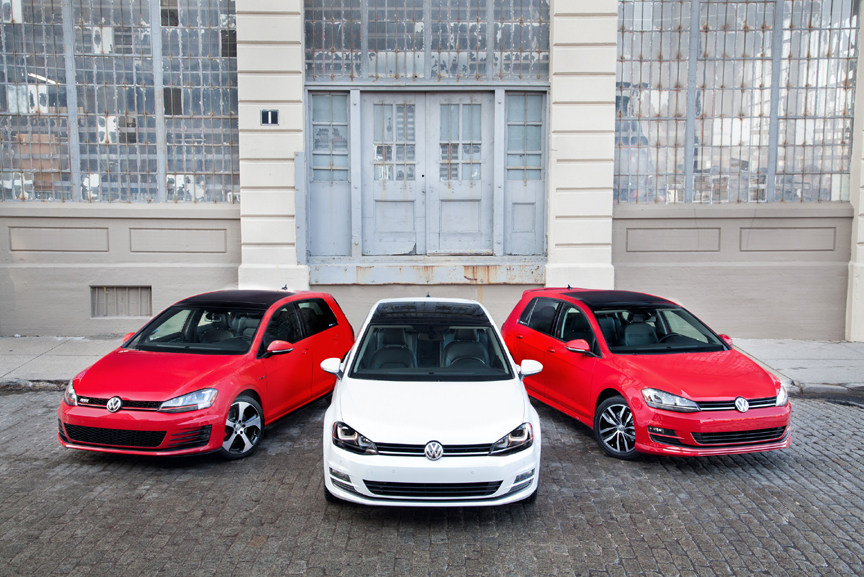 ![]() 2015 Volkswagen Golfs - GTI, TSI and TDI (left to right) |
