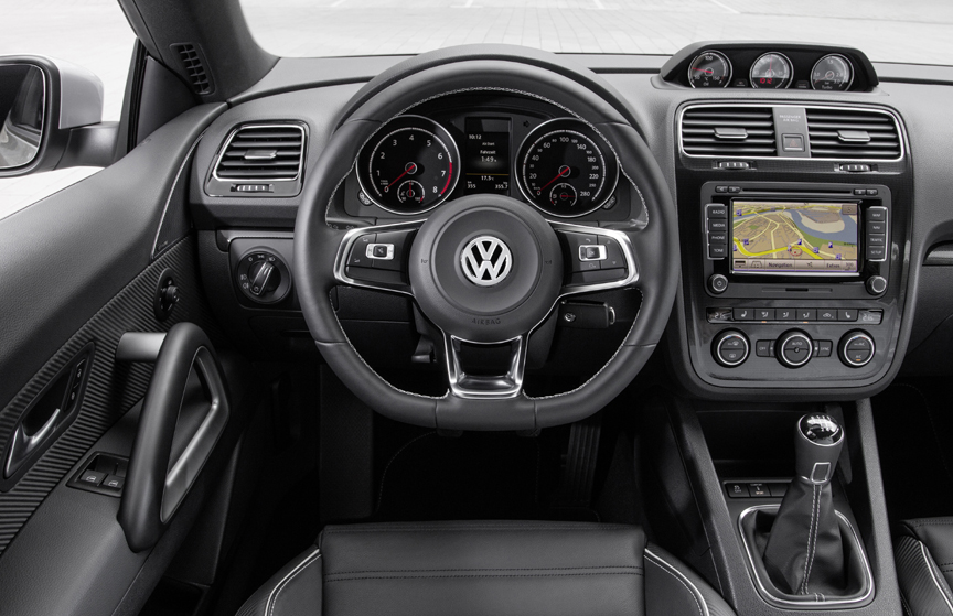 The top of the range Scirocco R comes with its own unique exterior styling kit; chrome-look door mirror caps; bi-xenon headlights with LED daytime running lights; 19-inch ‘Cadiz’ alloy wheels; R-specific sports seats; 10 mm lower sports suspension; DCC dynamic chassis control; and a colour multifunction trip computer.