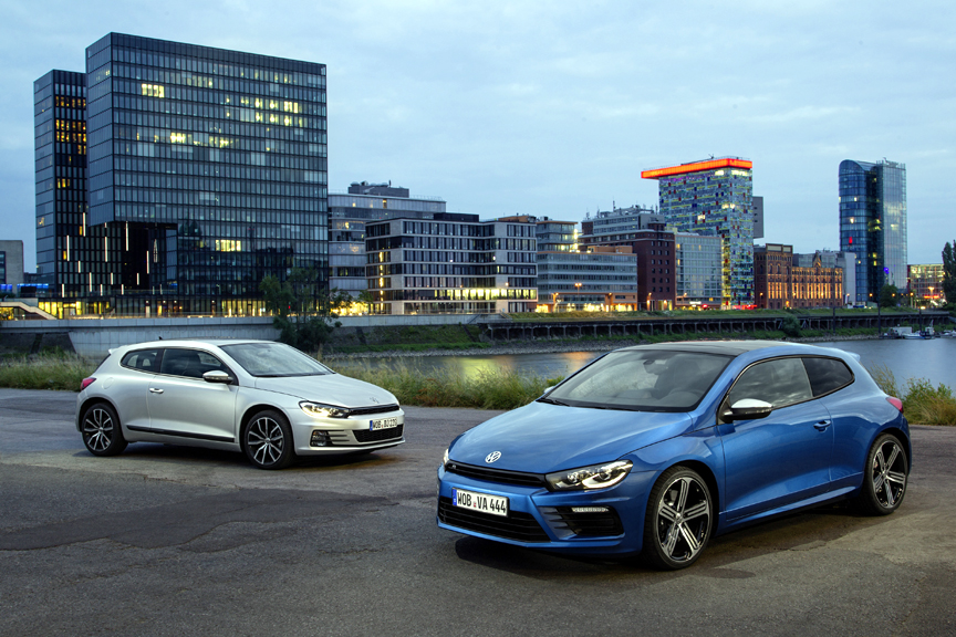 The petrol range consists of a 1.4-litre petrol with 125 PS (was 122), and a new 2.0-litre 180 PS unit which replaces the previous 1.4-litre 160 PS unit. Despite an increase in capacity and power, it is more economical than the unit it replaces. The previous 2.0-litre TSI 210 PS has been replaced with a 220 PS unit that is also 19 per cent more fuel efficient. The new Scirocco R uses a 2.0-litre unit producing 280 PS: 15 PS more than before.
