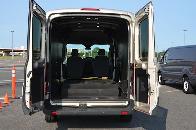 Ford says Transit high-roof van models offer best-in-class cargo height to make loading easier, and high-roof wagon models deliver best-in-class passenger compartment height, enabling passengers as tall as 6 feet 4 inches to stand upright. Transit also has a best-in-class rear door opening height and the available 270-degree swing-out rear cargo doors offer quick and easy access.