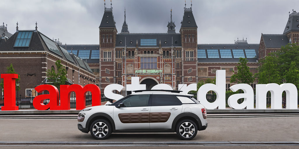 They are in fact pieces of rubber aircushions, like bubble wrap. Of course, they are nice styling details, but not less important, they protect the sheet metal from being dented by doors of cars next to the Cactus, which are opened too wide, or from cyclists who are getting too close. I do not know if that’s the reason Citroën chose Amsterdam for the first driving events, but it could be!