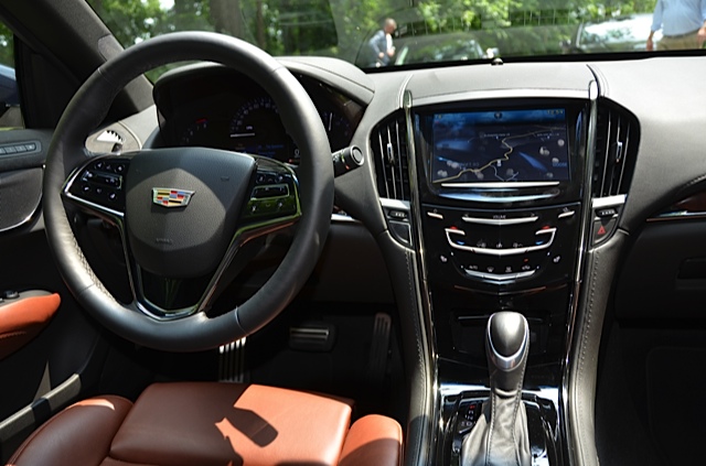 We had all the drive train variants available to experience. Given the limitations on time and the number of writers along on this program, I got to drive the ATS Coupe with automatic trans in both rear-drive and all-wheel drive configurations. The Virginia countryside offers a multitude of roads including expressway and some of the very rural twisty-hilly two-lane type. My personal take-away is that I preferred the rear drive coupe over the AWD model. I felt it a bit more nimble and responsive in the twisty back roads. Steering is tight and precise with good feedback through the thick-rimmed steering wheel.