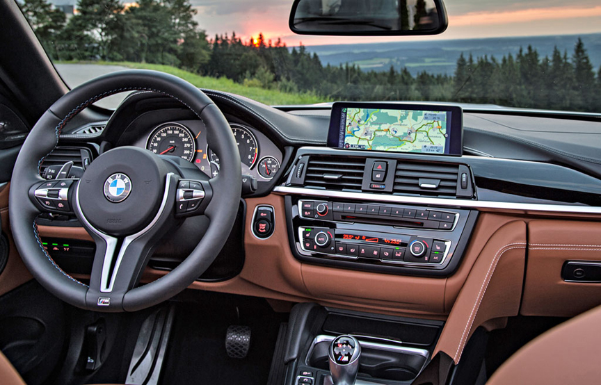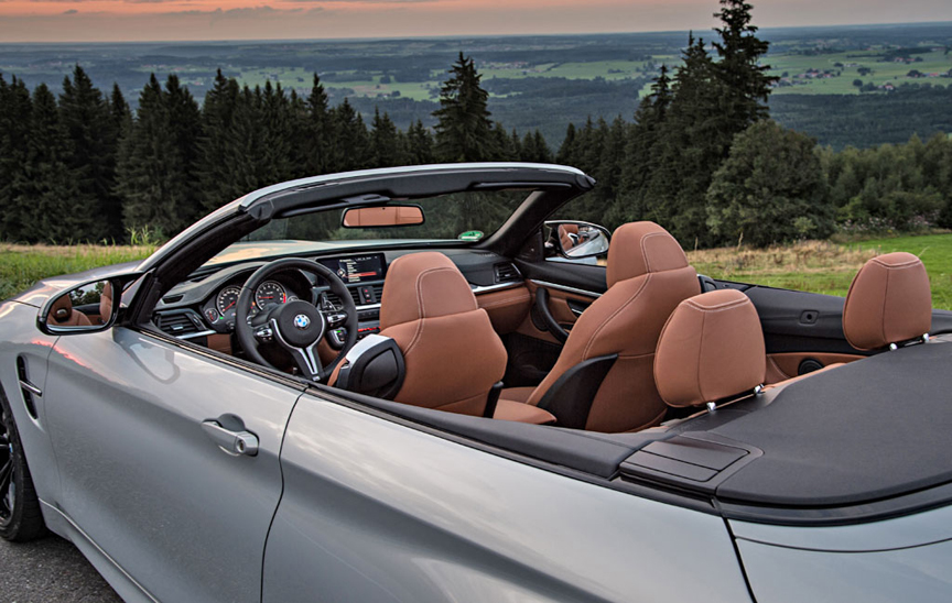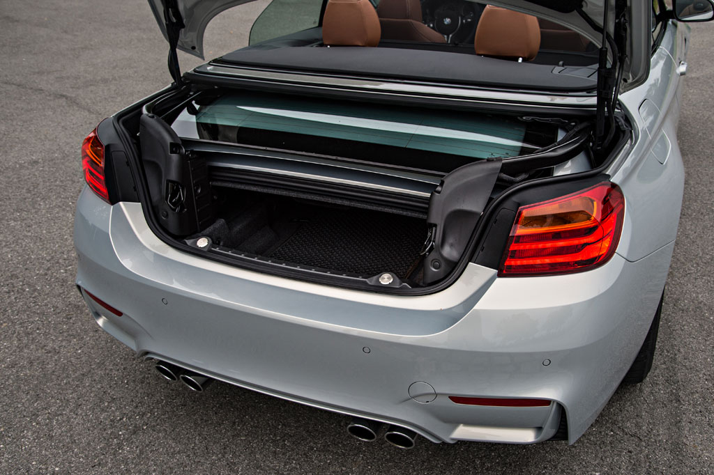 Back to the foldable steel top, that can be closed or opened in 20 seconds when driving at speeds below 18 mph. Whether the roof is closed or hidden in the luggage compartment, the M4 Convertible always looks attractive. With the roof stored in the luggage compartment, the four head rests clearly shows the BMW’s seating capacity and with the roof closed, the Convertible could easily be mistaken for a coupe.