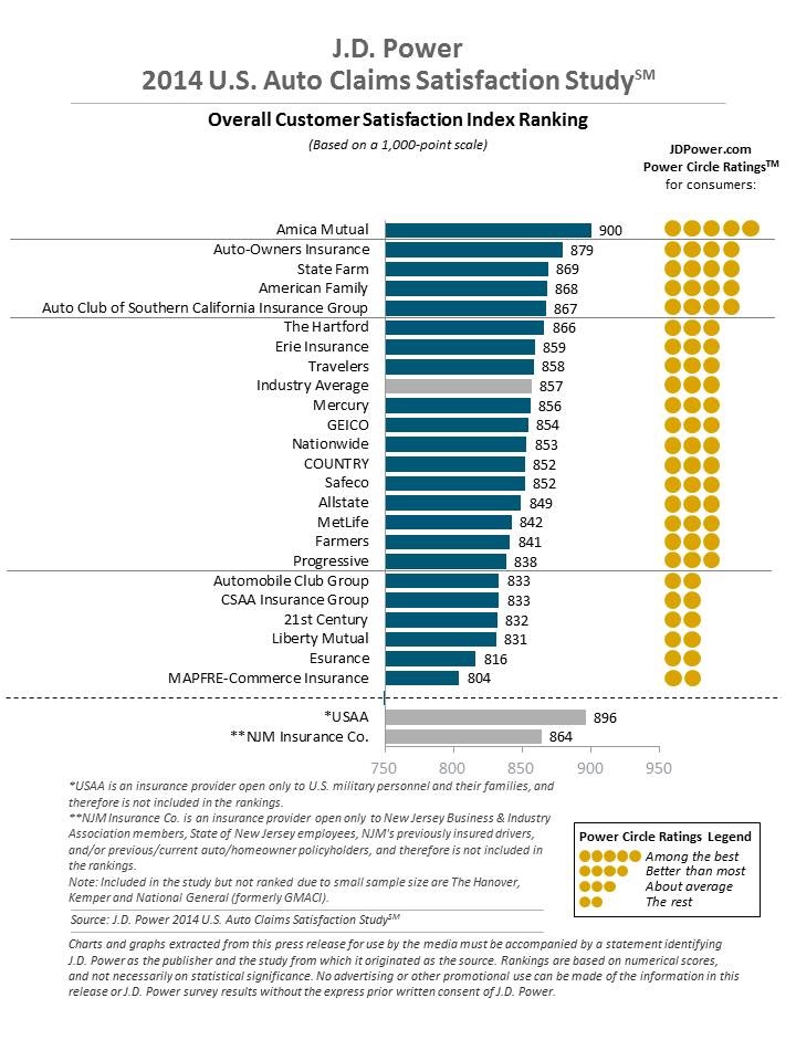 WESTLAKE VILLAGE, CA -- Oct. 27, 2014: Auto insurance companies' focus on their customers during the claims process is reflected in the continuing improvement in satisfaction, according to the J.D. Power 2014 U.S. Auto Claims Satisfaction StudySM released today.