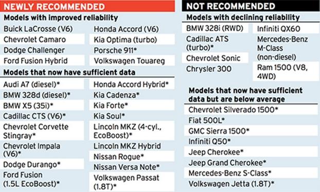 For full results visit the CR Website HERE or in the current issue of the magazine or in the specialty publication Consumer Reports Best and Worst Cars of 2015.