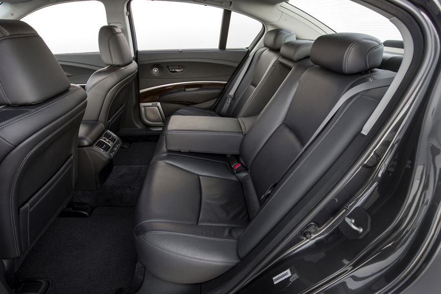 COMFORT: It's not quite a stretch limo, but close. RL sales were lost because of a lack of rear-seat space. That will not be an issue here. The RLX is the most spacious Acura sedan yet, especially in the rear. In Advance trim, rear outboard positions have two-level heat. Which won't impress front passengers, who get three levels of heat or cooling instead of the standard two of heat. Seat comfort is as expected in a luxury car, long trips a specialty. Milano leather graces the Navigation and higher models, and stitched leather is found on the doors, instrument panels, and steering wheel rims of all. It's a handsome, contemporary package, with good ergonomic design and useful storage -- the console box opens from the side, either side, for convenience of both front occupants. Instrumentation is bright and easily visible, and, in upper models, twin screens allow display of navigation and information simultaneously -- with further information directly in front of the driver, between the tach and speedometer. And yes, it's all programmable, with enough to keep a technophile happy for a while. There's plenty of trunk space, although, as is common in the luxury classes, the rear seat does not fold. There is a lockable ski pass-through.