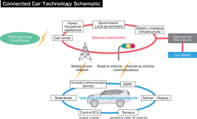 Looking further down the road, future technologies to be incorporated into the connected car system could be novel interfaces such as the AR Windshield, which makes use of augmented reality technology that would allow the driver to collect and process data more safely and efficiently without having to take their eyes off of the road ahead (see “The Future: Advanced Safety Technologies” section for more information).
