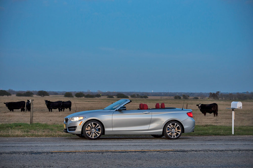 BMW 2 Series Convertible… another niche model? No, not really, the new convertible is the successor of the topless 1 Series. In line with BMW’s new designation for coupes and convertibles, it is now called a 2 Series. For our first test drive in Austin, TX, the weather did not desert us. After a rainy weekend, our day was flooded with sunlight.