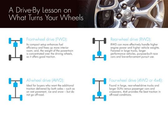 ![]() Buick offers a drive-by lesson on what turns your wheels explaining the differences between AWD, 4WD, RWD and FWD systems. |