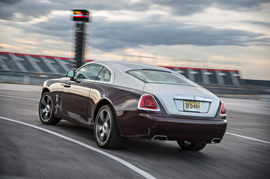 You could even call the handling agile, especially when you take into account its weight and size (207 in.). When you drive fast and smooth, the Wraith feels confident and you will hardly notice that you easily reach a higher speed, than would have been your intention. Neither does cornering not ask for a lot of effort, thanks to the excellently weighted steering feel.