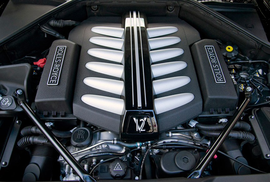The heart of the demon is the twin-turbocharged 6.6-liter BMW V-12 engine with 624 hp at 5,250 rpm with 800 Nm/590 pound-feet of torque at just 1,500 rpm. With those numbers the Wraith is hugely powerful; even better, it is the most powerful Rolls-Royce ever. The power plant – a name that suits the V-12 very well, is working together with the well known ZF 8-speed automatic transmission.